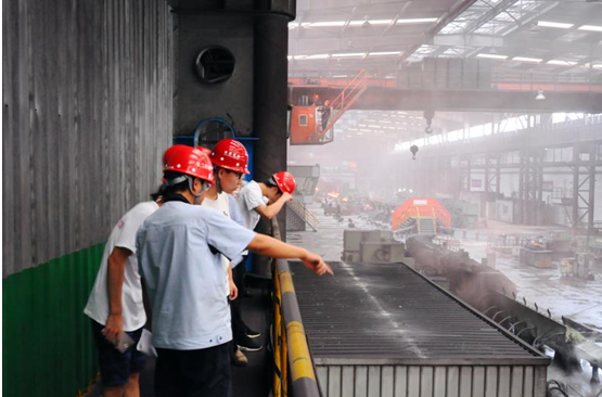 同學(xué)們?cè)谝贿厖⒂^,一邊通過(guò)師傅現(xiàn)場(chǎng)講解,才真正了解到軋鋼的工藝流程并且知道了鋼板到底是怎么形成的。赤紅而超高溫的鋼板在生產(chǎn)線(xiàn)上快速運(yùn)行,最后被切割成一段一段的,經(jīng)冷水冷卻后,這些基本板材,有的進(jìn)入軋機(jī)進(jìn)行軋制后做成鋼材卷板。當(dāng)天,在高溫又環(huán)境惡劣的再熱軋現(xiàn)場(chǎng)中,令人有種“蒸桑拿”的錯(cuò)覺(jué)。雖然大家早已汗流浹背,但即便如此,同學(xué)們?nèi)允潜3志?,認(rèn)真聆聽(tīng)?zhēng)煾档闹v解。當(dāng)大學(xué)生們親眼目睹一道道工序的順利進(jìn)行,直到鋼材一批批的成型,不由發(fā)出陣陣掌聲,既為工人師傅的精湛工藝和吃苦精神所感染,更深刻地體會(huì)到制造企業(yè)為社會(huì)主義生產(chǎn)力作出的貢獻(xiàn)。