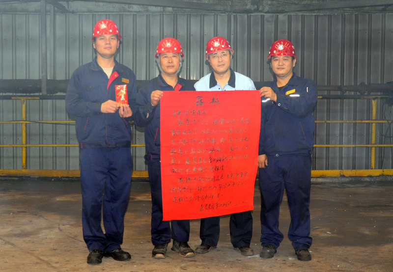 2018年9月11日,營(yíng)口鋼鐵有限公司軋鋼廠三軋車間日產(chǎn)線材4274噸,打破了軋鋼車間日生產(chǎn)記錄,創(chuàng)造了歷史新高。集團(tuán)副總裁孫朝英等領(lǐng)導(dǎo)到場(chǎng)祝賀。