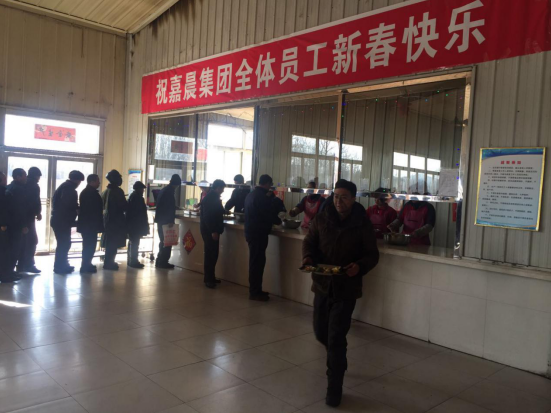當(dāng)璀璨的煙花在嘉晨上空朵朵綻放之時(shí),公司領(lǐng)導(dǎo)班子一行又來到食堂看望了仍在工作的廚師、服務(wù)員及就餐職工。賈總向大家拜年!并感謝食堂員工為保證集團(tuán)燃化職工度過春節(jié)而精心準(zhǔn)備的可口、精美菜肴。廚師長(zhǎng)代表全體廚師及服務(wù)人員,感謝公司領(lǐng)導(dǎo)的關(guān)懷,并表示,要發(fā)揚(yáng)不怕苦、不怕累的嘉晨精神,為了全體職工能過好春節(jié)而努力工作,食堂員工耿艷為了給不能回家過年的職工營(yíng)造家的感覺,爬上高梯,精心打扮食堂,讓回不了家的職工感受到家的溫暖、嘉晨的愛意!