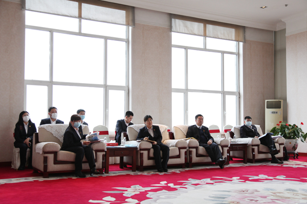 下午2:20時,集團(tuán)董事長孫壽寬首先向省中行賈天兵行長、楊玉峰副行長等一行就到嘉晨集團(tuán)實地考察、現(xiàn)場辦公表示熱烈歡迎。董事長向客人詳細(xì)介紹了集團(tuán)各個公司的經(jīng)營情況,特別是在疫情期間一手抓疫情防控、一手抓生產(chǎn),實現(xiàn)防控生產(chǎn)兩不誤。全集團(tuán)庫存產(chǎn)成品“超純鎂”6萬噸、盤螺等28萬噸、焦炭7萬噸,原材料儲備十分充足,生產(chǎn)流動性良好。賈天兵行長對我集團(tuán)這些年的發(fā)展變化和對社會的卓越貢獻(xiàn),對公司的資源優(yōu)勢和高科技項目前景表示看好,對公司復(fù)工復(fù)產(chǎn)的經(jīng)營情況表示肯定,對公司的未來發(fā)展充滿信心。董事長對省中行予以我集團(tuán)的支持和肯定表示感謝,希望雙方加強(qiáng)溝通聯(lián)系,構(gòu)建有效的合作平臺,建立長效機(jī)制,積極推進(jìn)銀企合作項目的落實。