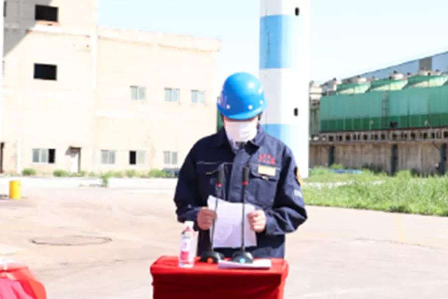 發(fā)電廠廠長(zhǎng)項(xiàng)峰分別代表輔助單位進(jìn)行表態(tài)發(fā)言