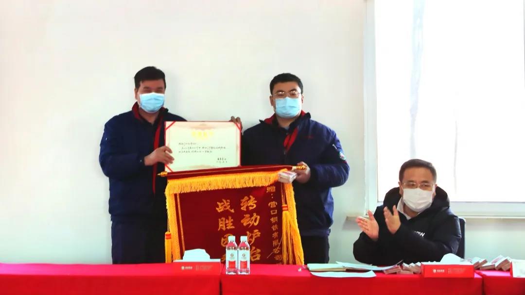 張總為煉鐵廠頒發(fā)錦旗和榮譽(yù)證書
